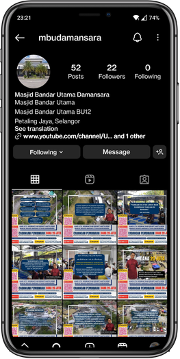 Laman media sosial ini dicipta bagi memberi maklumat kepada ahli kariah dan juga orang ramai berkaitan program dan aktiviti masjid serta merupakan inisentif utama bagi mencari dana infak pembinaan bagi menyiapkan Kompleks Masjid Bandar Utama Damansara.