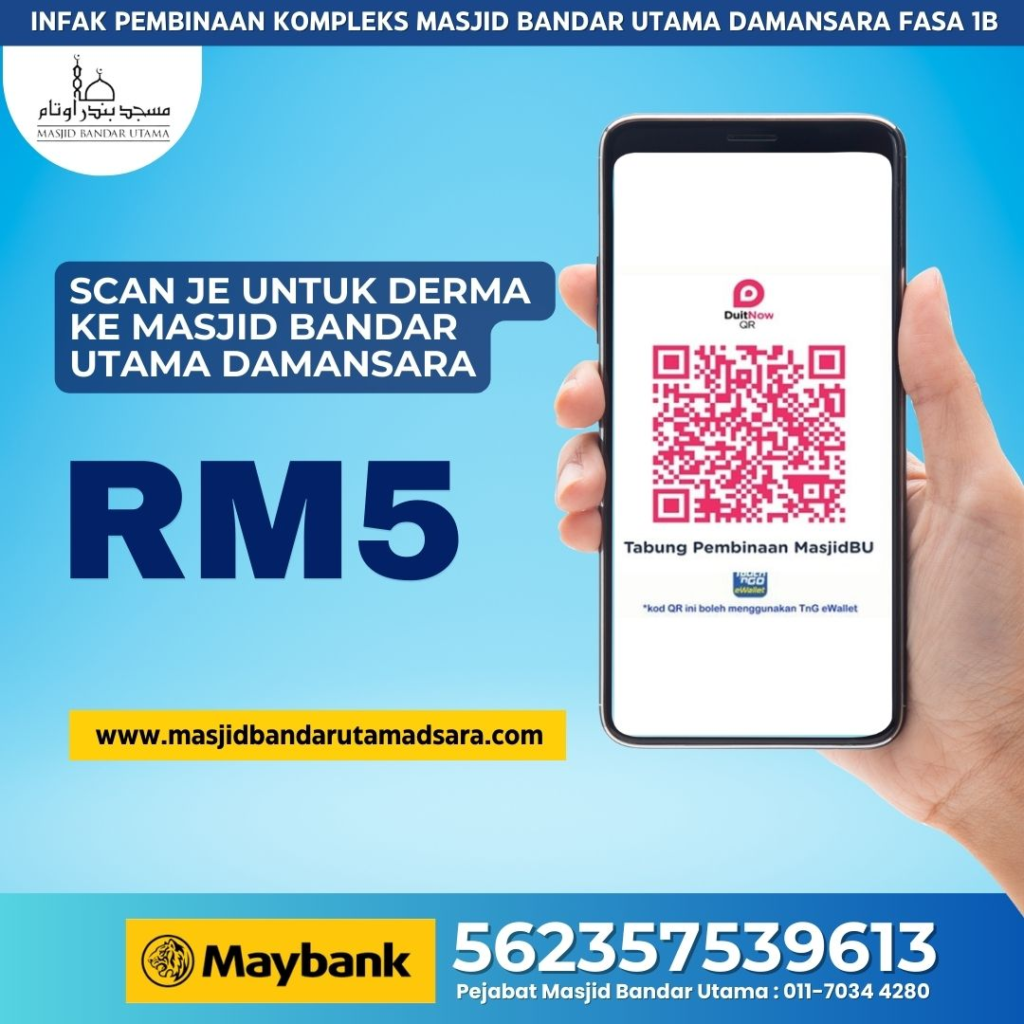 Sumbangan juga boleh dibuat melalui applikasi kod QR Masjid Bandar Utama Damansara.